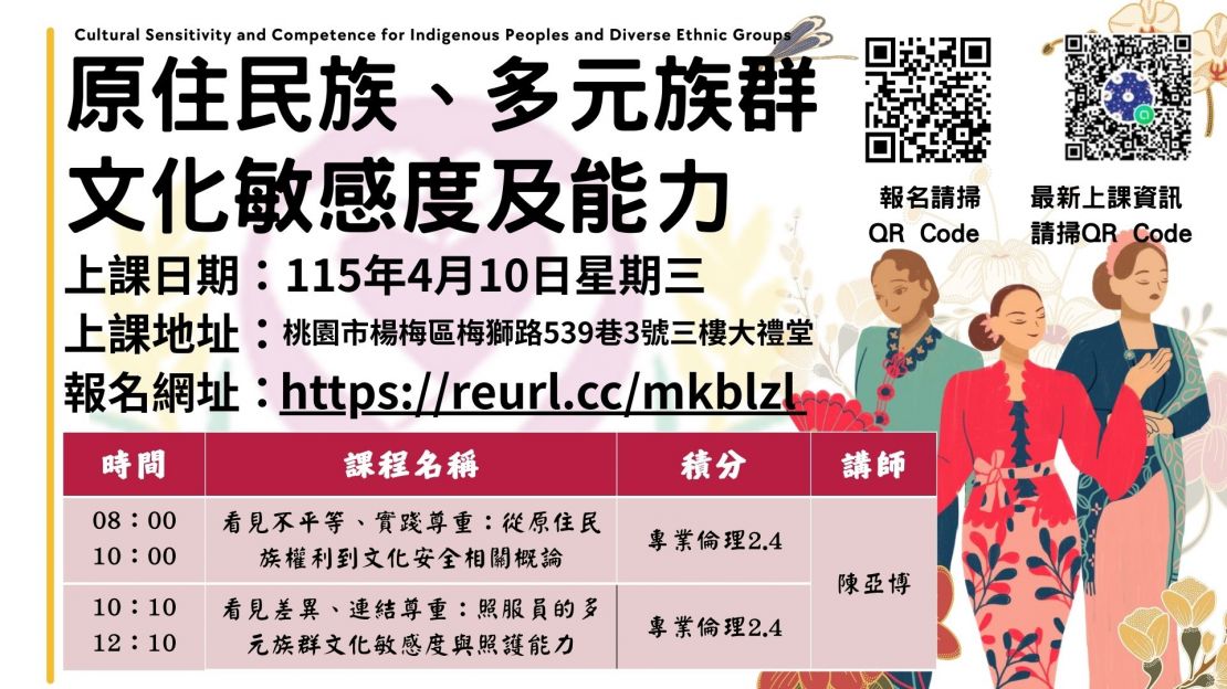 課程名稱|原住民族、多元族群文化敏感度及能力【線上同步課程】 08:00-12:10 am.