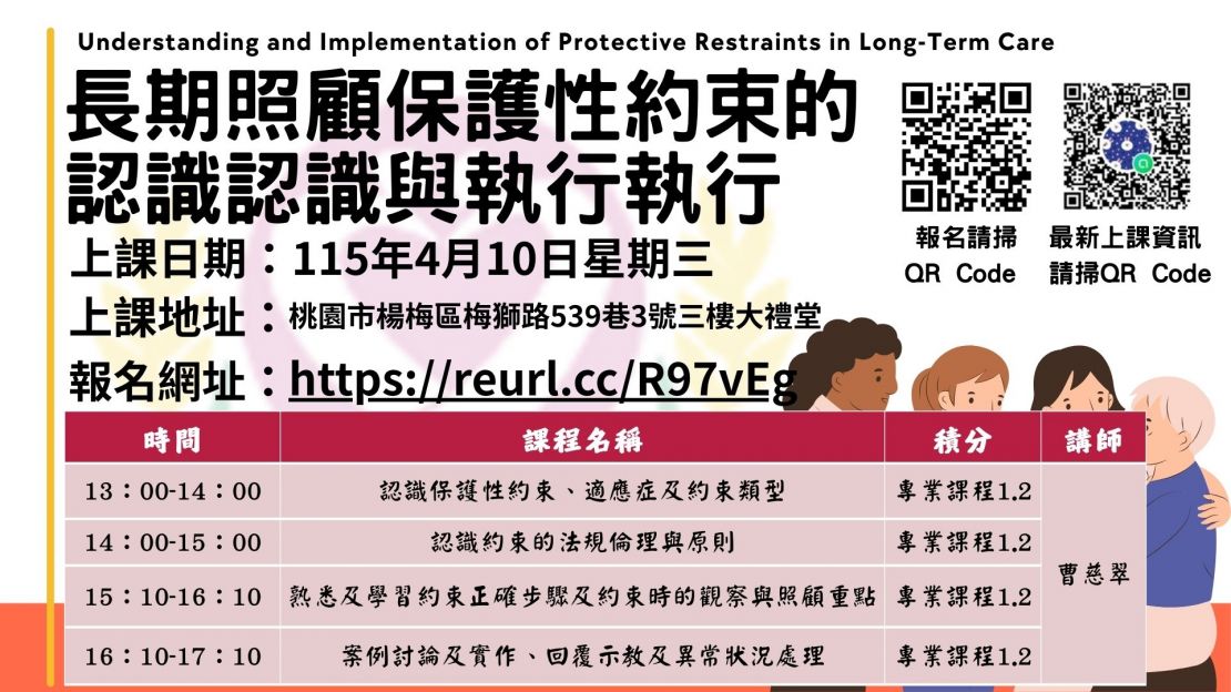 課程名稱|長期照顧保護性約束的認識認識與執行執行【線上同步課程】 13:00-17:10 pm.