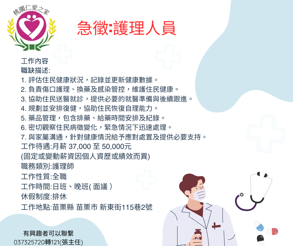 我們誠摯邀請 社工人員 與 護理人員 加入我們的溫馨團隊