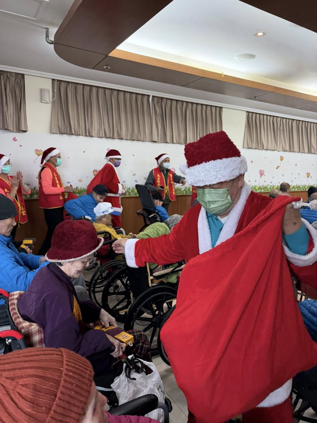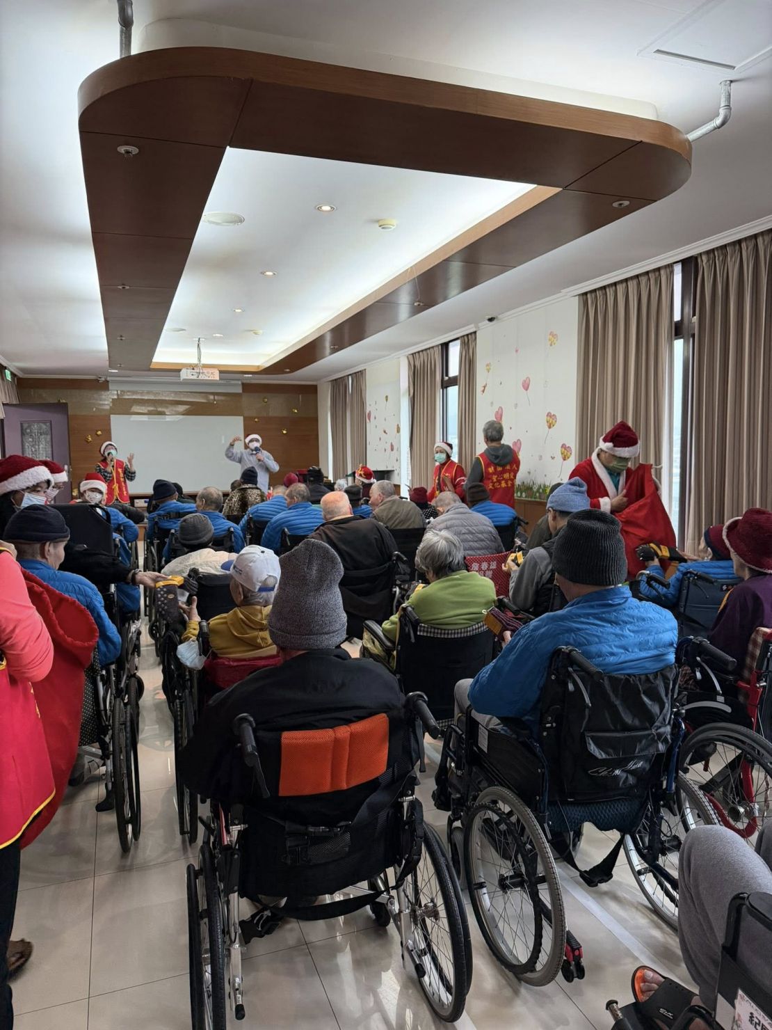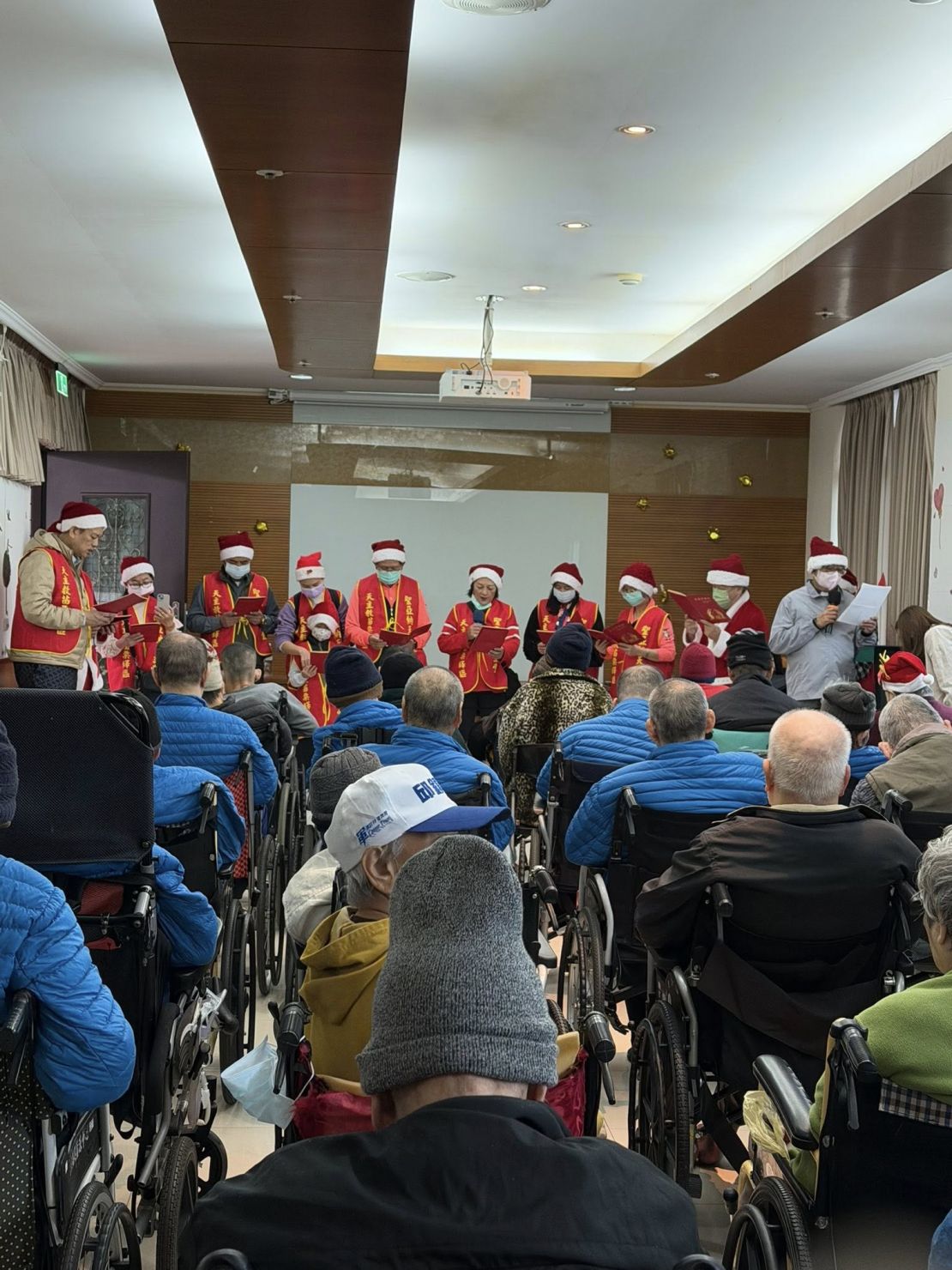 熟悉的聖誕歌聲在中心響起,歡樂的節奏讓長輩們臉上綻放笑容,現場洋溢著溫馨又熱鬧的節慶氣氛。