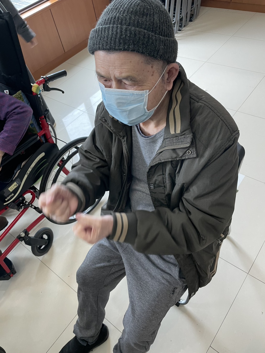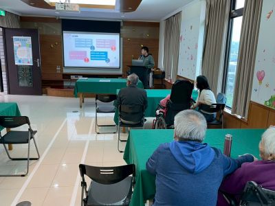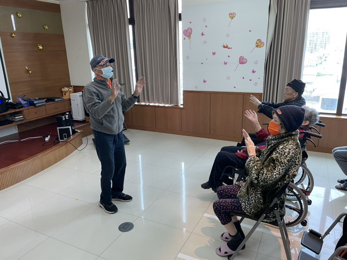 長輩跟著音樂一起伸展手腳、活動筋骨